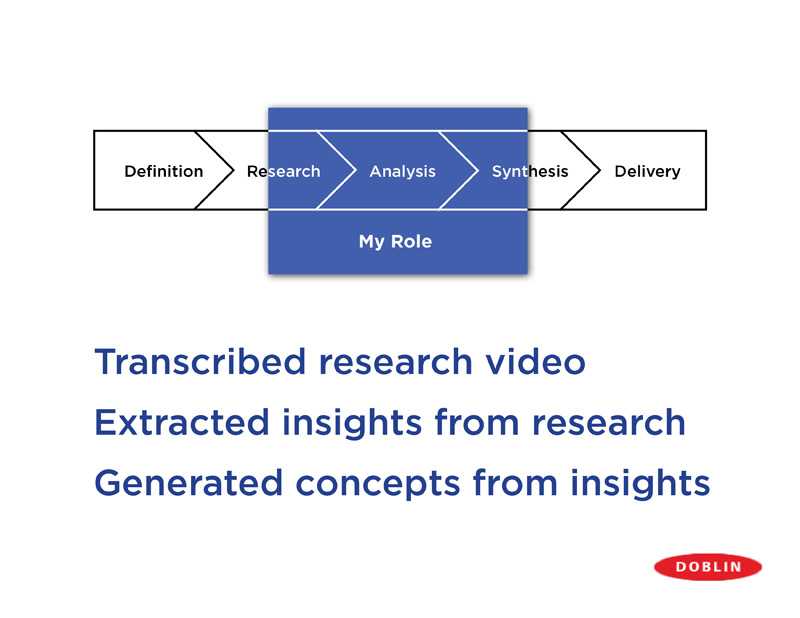 As an intern at Doblin Monitor Group I worked with a team of designers to create a retail business in the US for a telecom company that had no experience in retail nor a presence in the US. This was a transformational project for the client company, similar to when Apple Computer entered the retail business. I participated in the middle stages of the process: doing interviews, analyzing research video, framing insights, and exploring concepts.